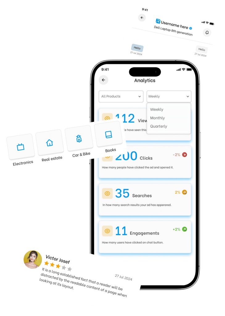 Our classified app makes buying, selling, renting, or sharing simple and convenient. Users can create listings for items, properties, vehicles, or services, complete with photos and descriptions. Interested buyers or renters can browse categories, search locally, and connect directly with sellers through in-app messaging.